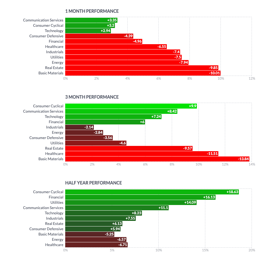 Technology is still leading the way. XLY, XLC and XLK are all heavily tech related sectors.