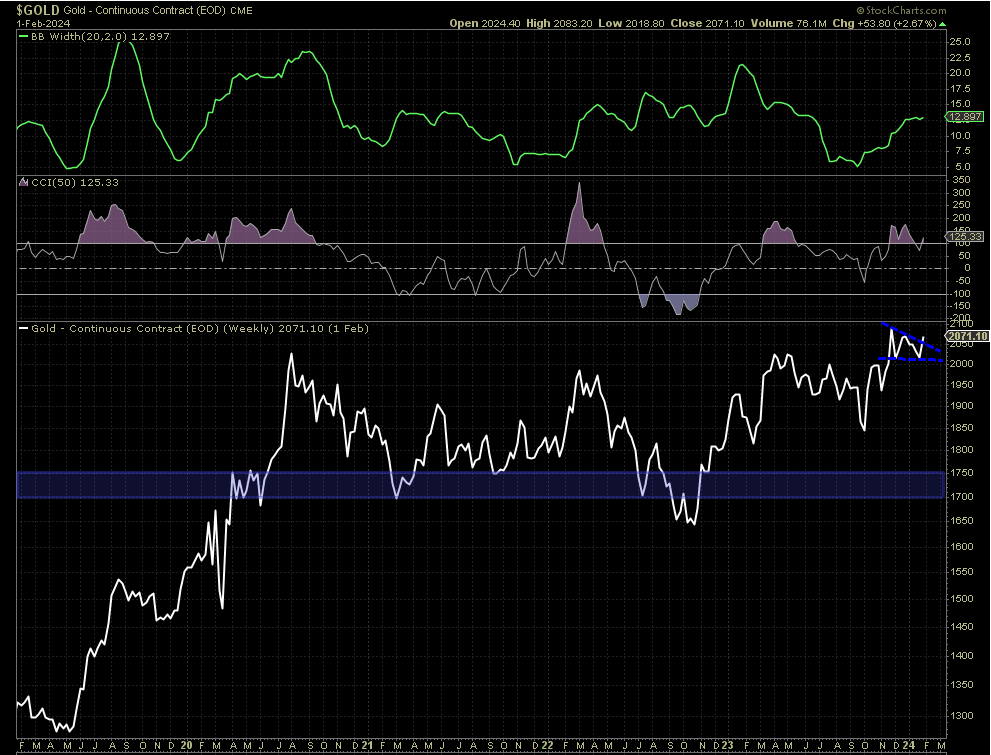 Gold-Notably, gold open interest plummeted rapidly from 500,000 contracts to the lower end of the range, standing at 433,000 contracts in just a few weeks. This suggests a scarcity of interest in holding gold contracts. I am not bearish on gold at all. I would be adding to this trade here if you don’t have a position and there are other ways to play this. I will post that for our subscribers this week. As rates fall. This could be a major move this year.