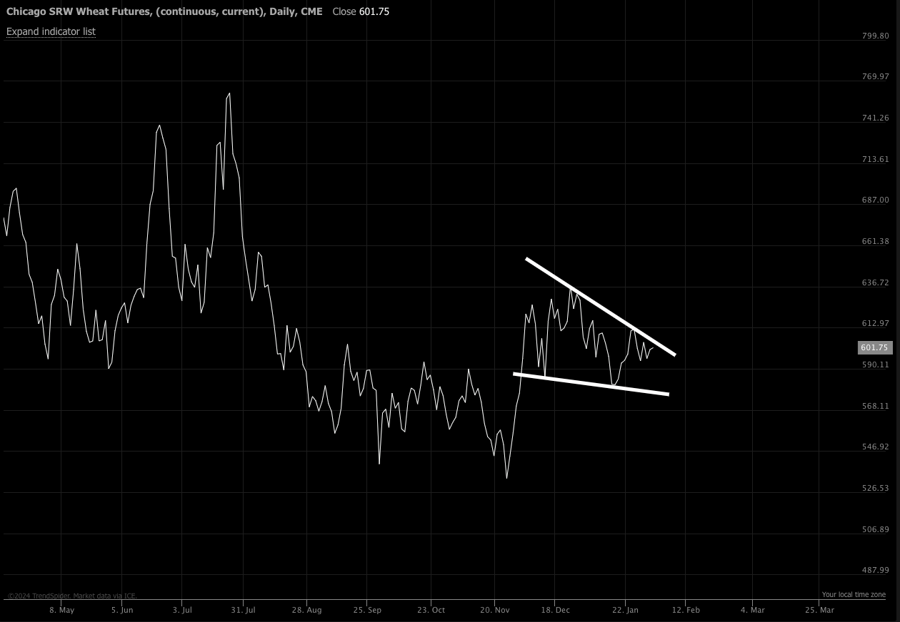 Wheat-The emergence of a new Polar Vortex event in the United States or Europe carries the potential to instill fear among market participants, particularly in the winter wheat sector. This apprehension could prompt short-sellers to reconsider their positions and opt to cover, potentially serving as a catalyst for shorts across the broader grains complex to exit their positions.