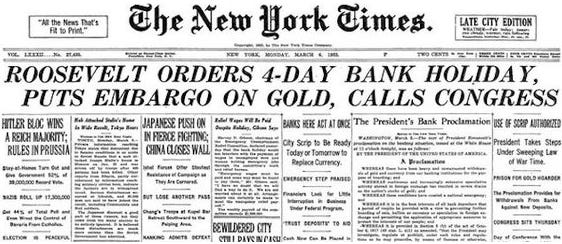To supposedly combat the economic crisis(wink wink say no more, take my gold Mr. President), President Franklin D. Roosevelt took office in 1933 with a promise to implement bold measures.