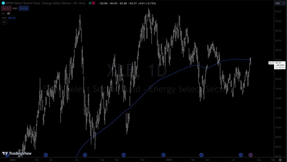 Oil and the energy sector are fast approaching the 200 day moving average. I am not the biggest fan of moving averages but I know for a fact that almost everyone has one on their chart. Even the traders who say that they hate “moving monkeys” lol. As we are watching this, I am also seeing that the COT report has commercial traders coming in at a significant level where we usually see bottoms in the oil market. (First chart)