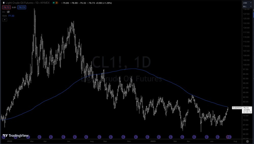The futures curve also is set up to bring the commodity higher again. Currently we are long gasoline and the energy sector. Oil is very close to a buy signal as well. This is much different than our recent positioning (we are still holding on to our long tech trades which are holding up very well) however, what I do as a trader is I trade what is in front of me. I do not trade what I hope will happen.