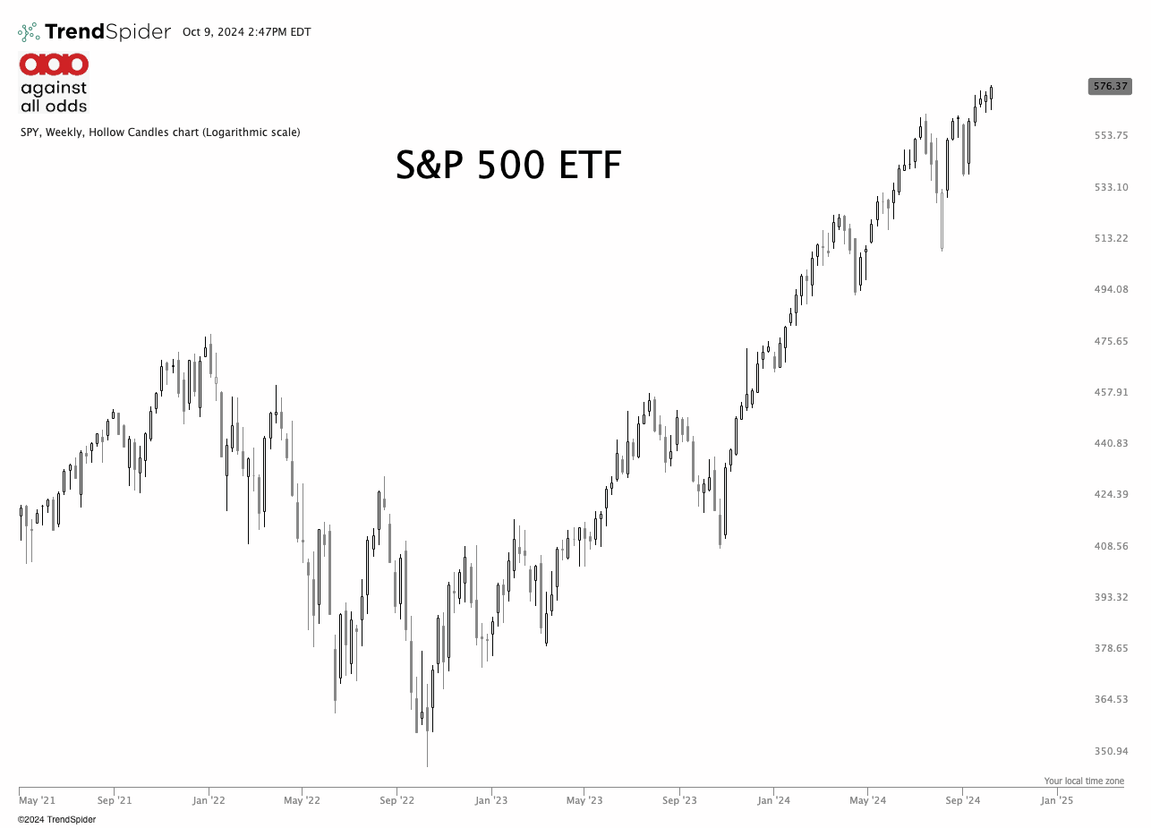 Here is the trend of the SPY ETF. As you can see, we continue to move up and to the right showing that we are in an uptrend on all time frames.