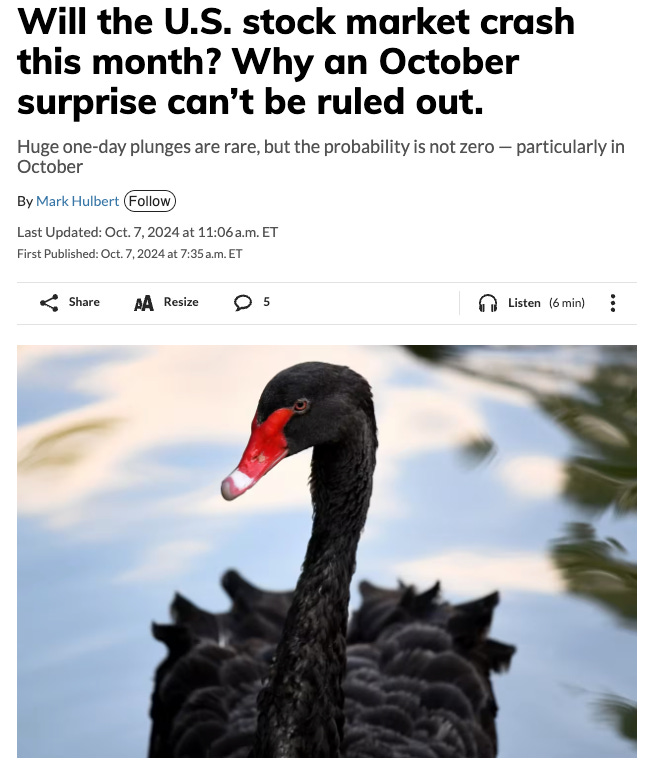 The infamous black swan warnings, showing ominous images telling you to prepare for a market crash in October. It’s the same old fear-mongering repackaged for a new age.