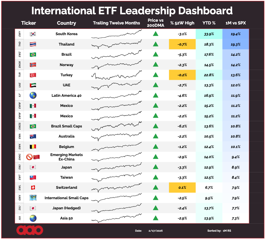 If you look at the International ETF Leadership Dashboard, Thailand ($THD) is near the top of the table.