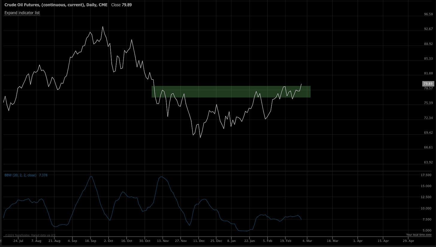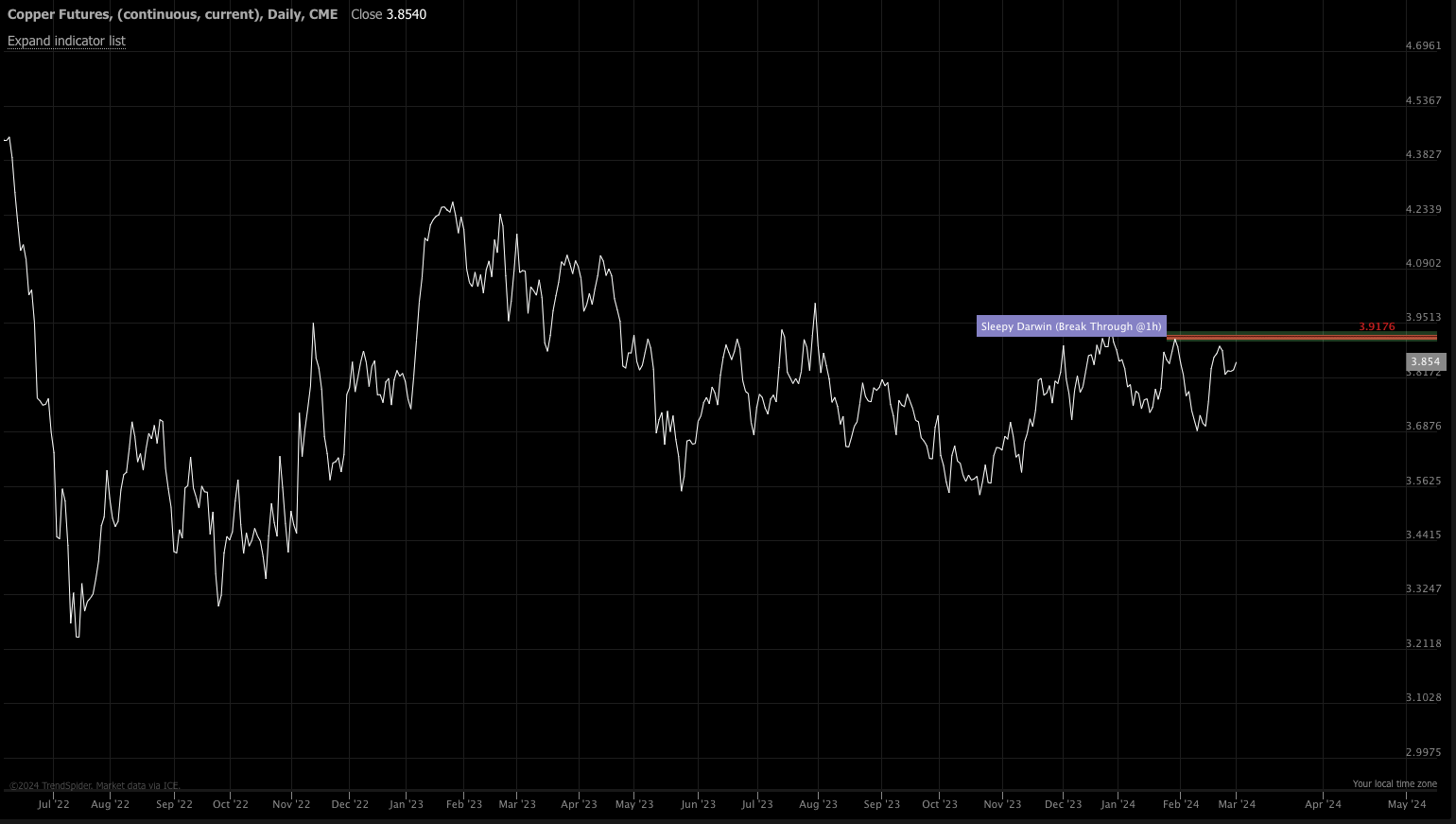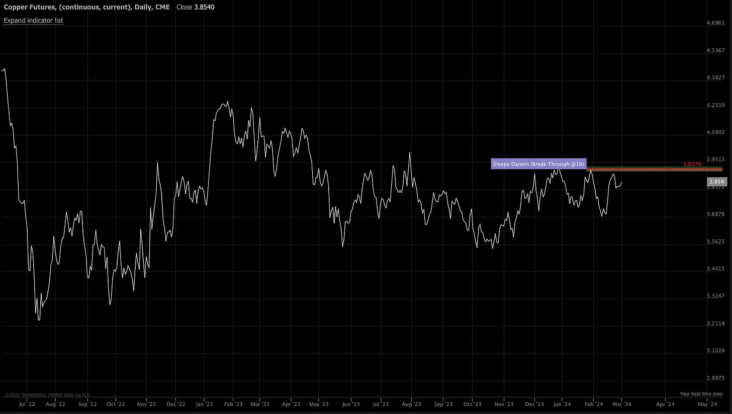 Copper would start really moving if we can see a close above 3.91 on the front month contract. Honestly, this is the one that would confirm our reflationary thesis. Almost everything else is headed that direction.