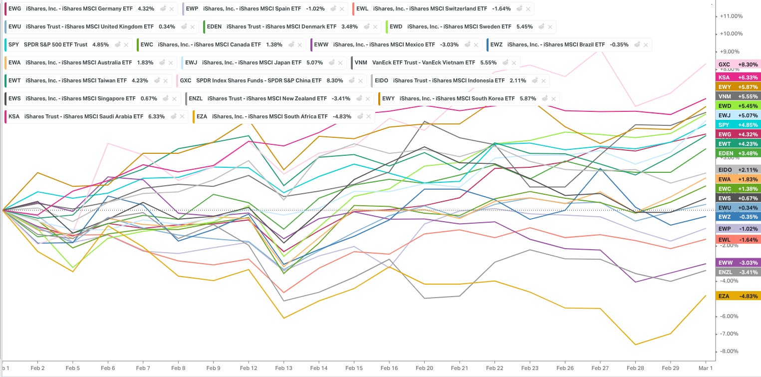 Countries that benefit from stronger commodity prices are also doing incredibly well here. This month will tell us everything we need to know. Really over everything what I would like to see is a broad pull back. Then I want to see where relative strength is heading. My thought is that it will be in to all the areas that we just pointed out here.