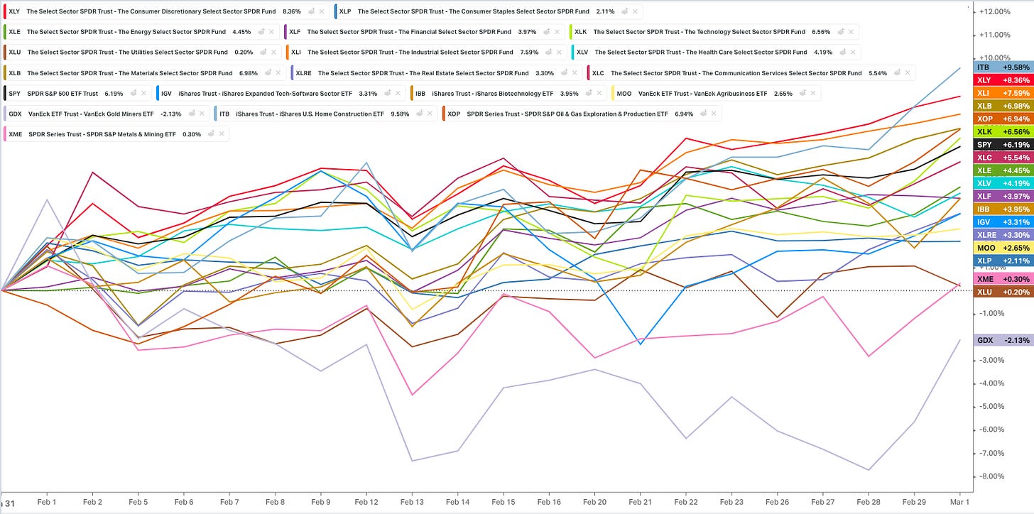 On a one month time frame the reflationary sectors are leading the way.