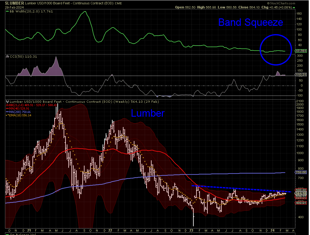 Lumber stands as a pivotal component of the economy, wielding significant influence across various sectors. As a fundamental material in construction, it plays a vital role in residential, commercial, and infrastructure projects, underpinning the housing market's health and broader economic activity. If both of these break out. You will see our signals start plowing us in to the reflationary thesis.