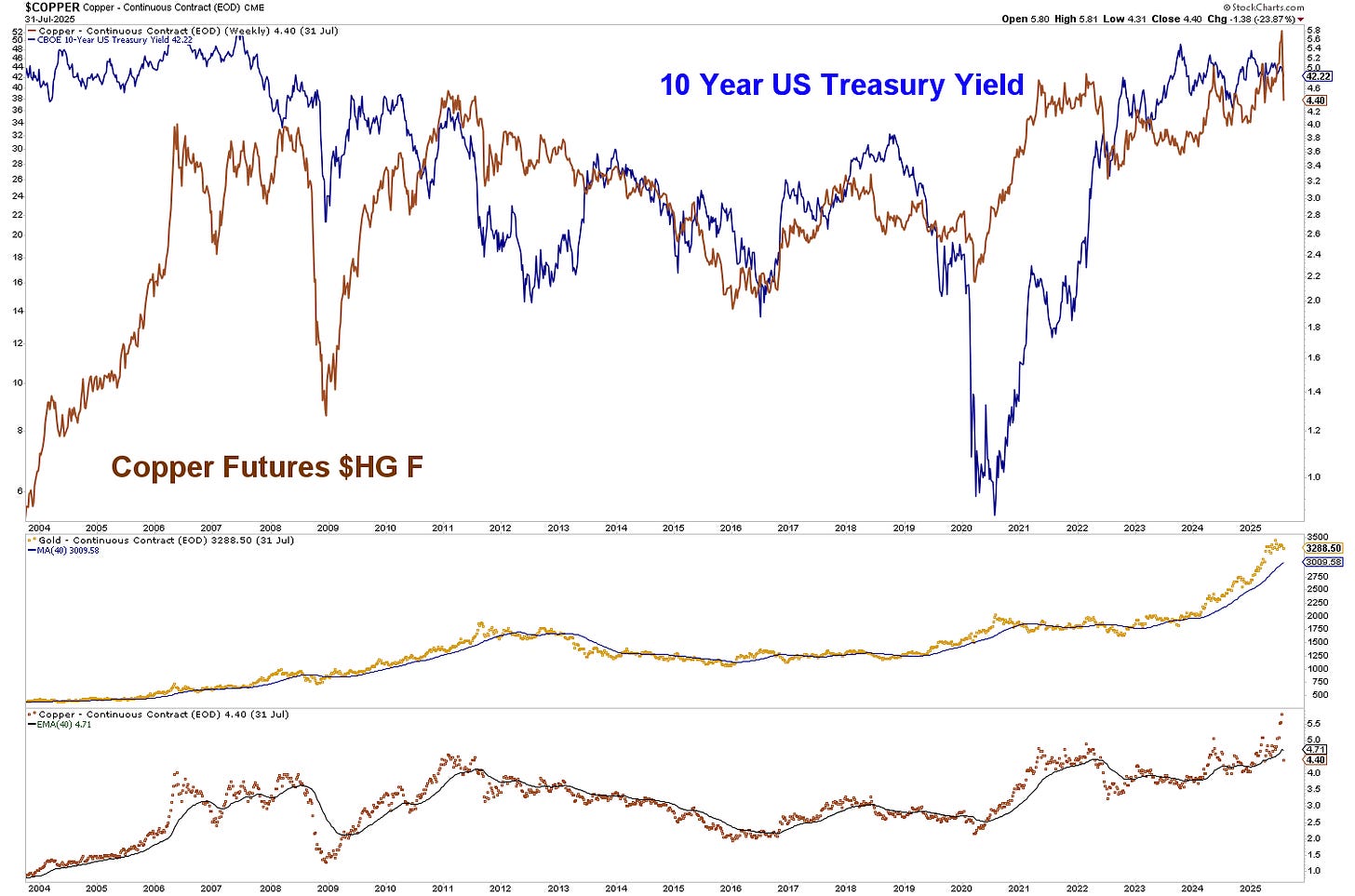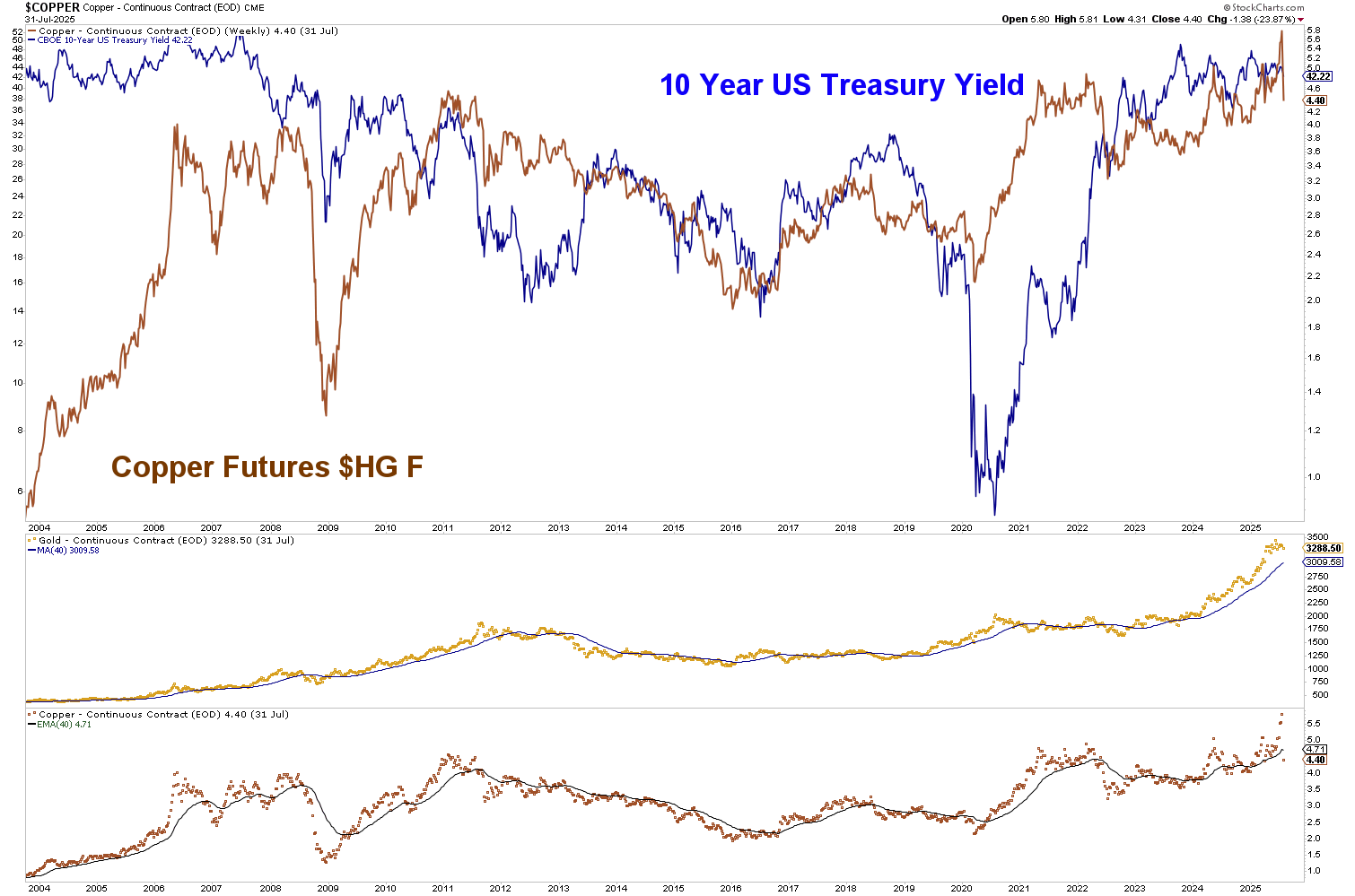 For two decades, copper and long-term Treasury yields have moved in lockstep. When copper rallied, yields followed. When copper broke down, yields fell with it. They’ve been co-indicators of growth and inflation expectations—bond traders and industrial traders pricing in the same reality from different angles.