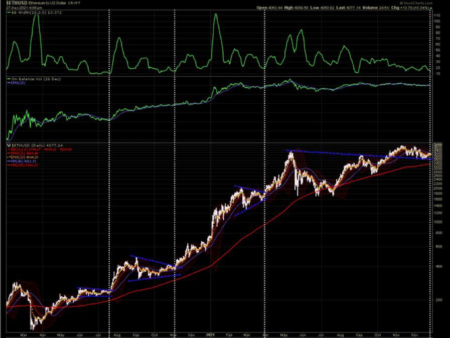 Eth with a band squeeze. Look for a break out.