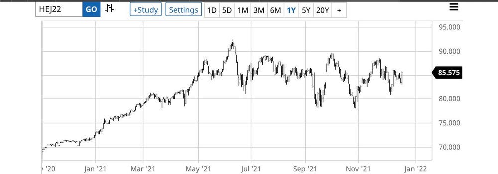 Lean Hogs and may have begun buying time to see when Chinese demand for pork comes back in as the hog rebuilding phase in china gets rolling in 2022.