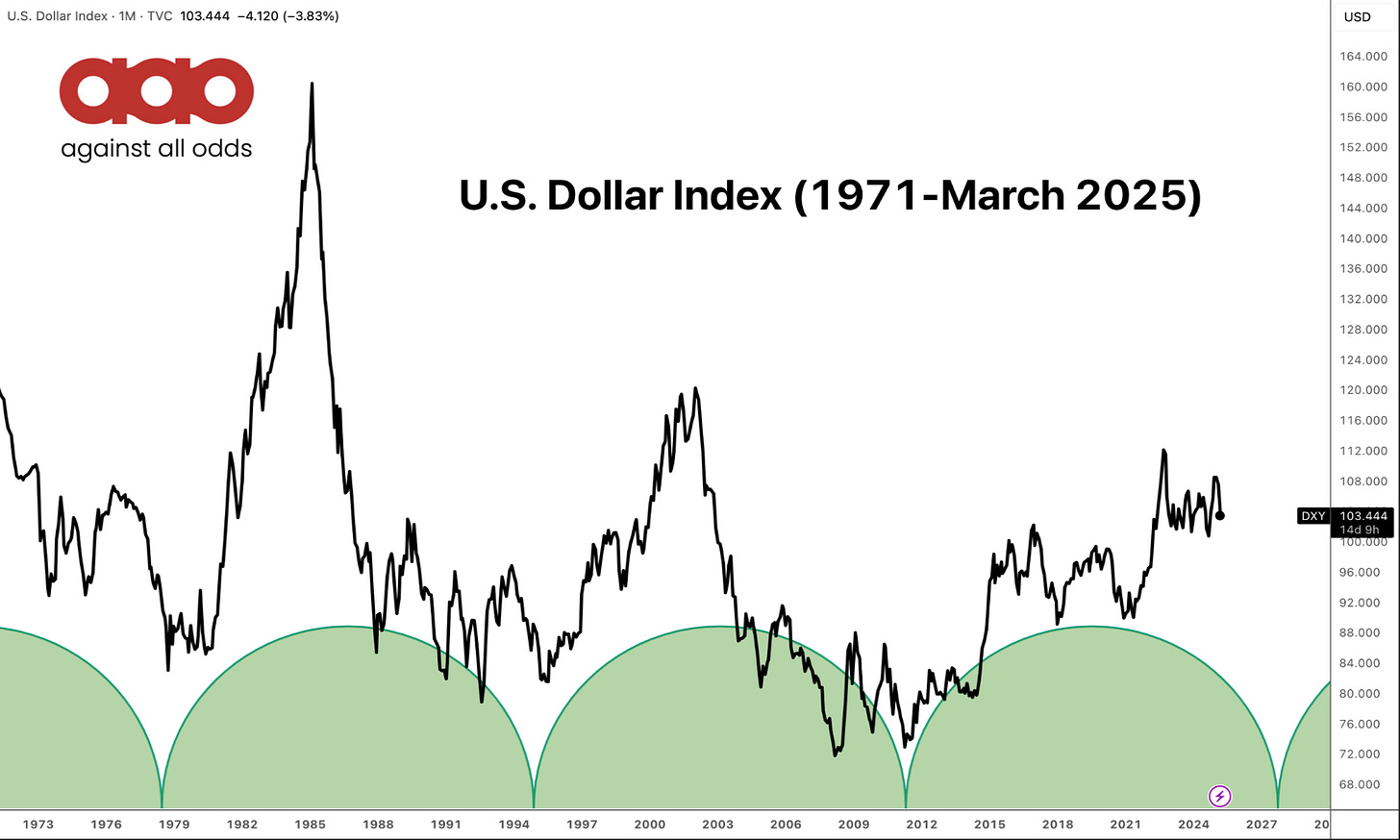 Right now, my attention is on something that hasn’t happened in a long time: a weak dollar cycle.