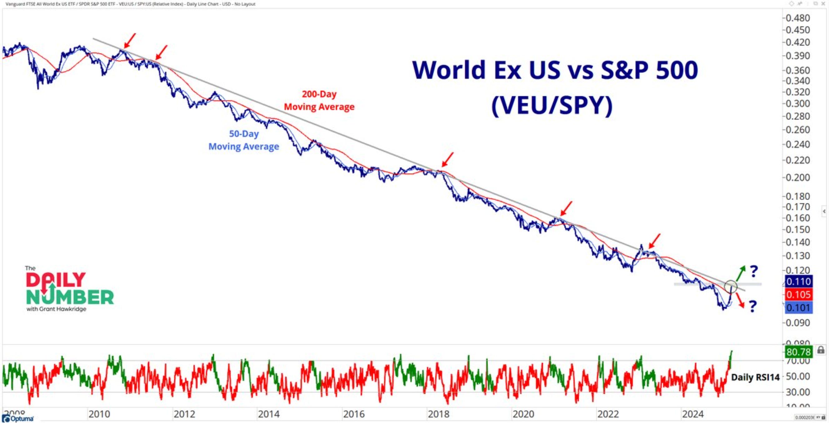 "The relative ratio of the World Ex-US index versus the S&P 500 is on the verge of breaking out of a 16-year downtrend."