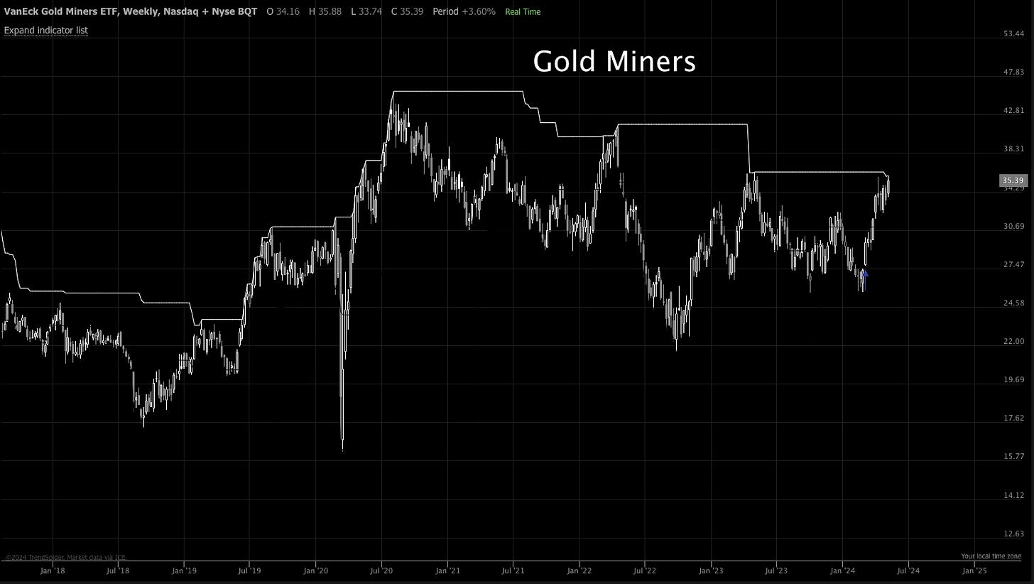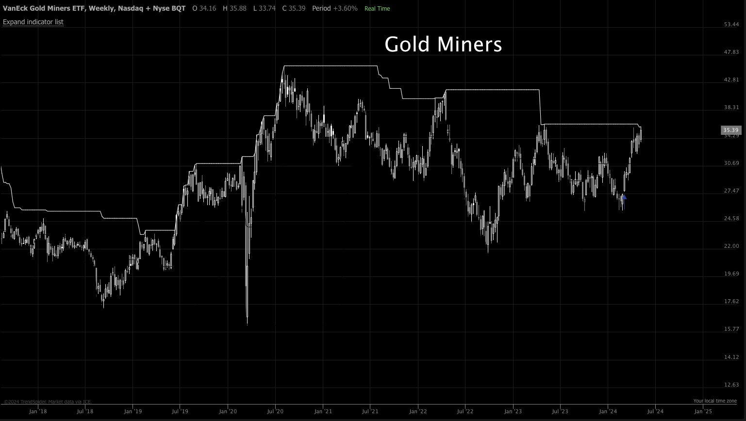 Gold miners new 52 week highs.