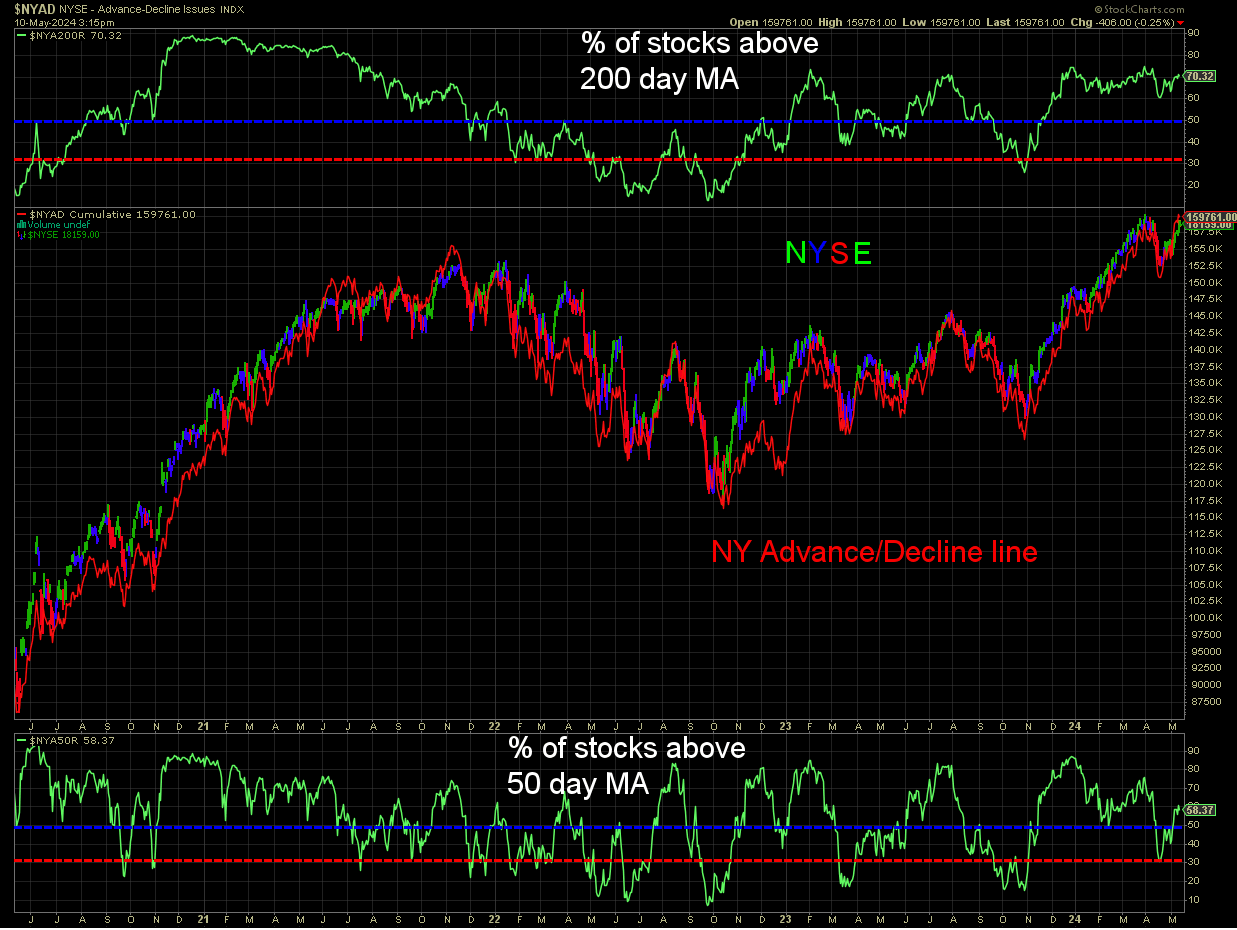 NYSE bull/bear indicator-Our compass which tells us general market direction has been spot on for years. Still in bullish territory. I would still look for more upside in the NYSE and SPX.
