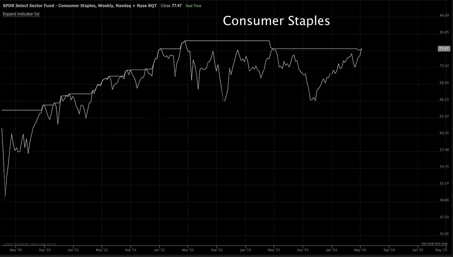 XLP Consumer Staples making new 52 week highs.