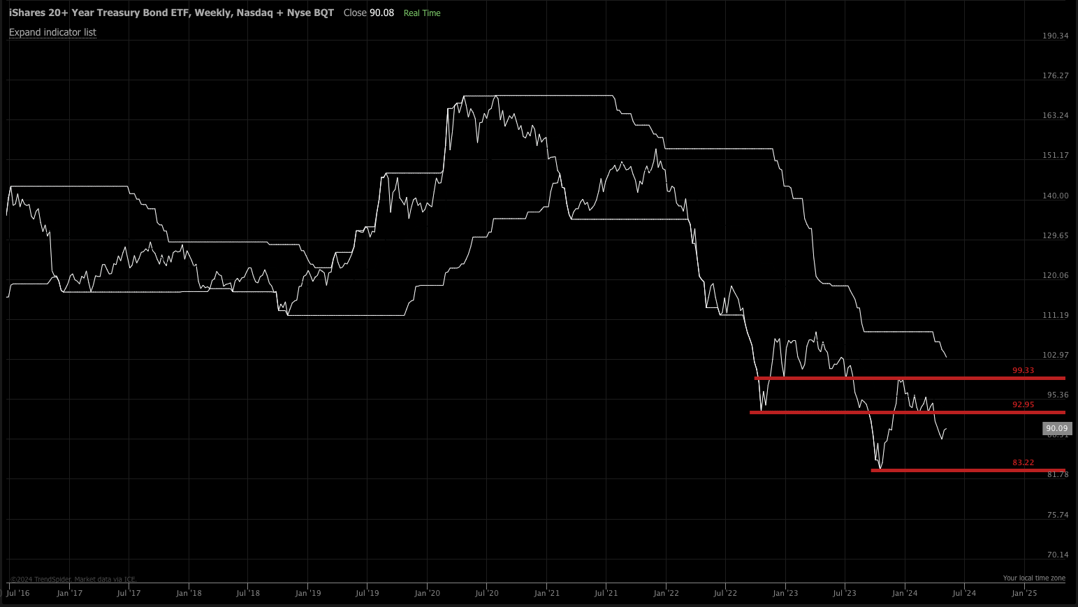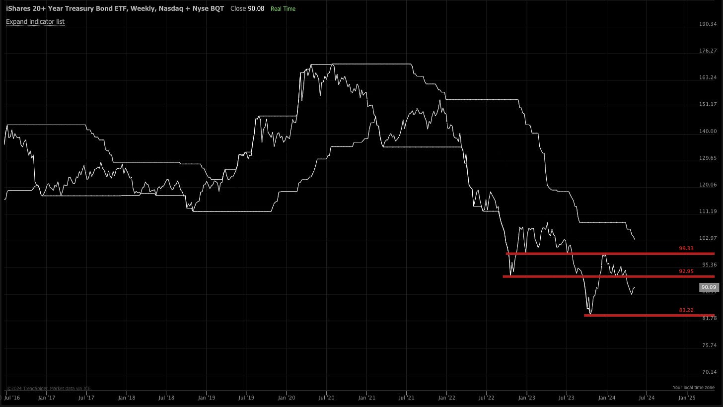 TLT Long bonds are still far from hitting a 52 week high.