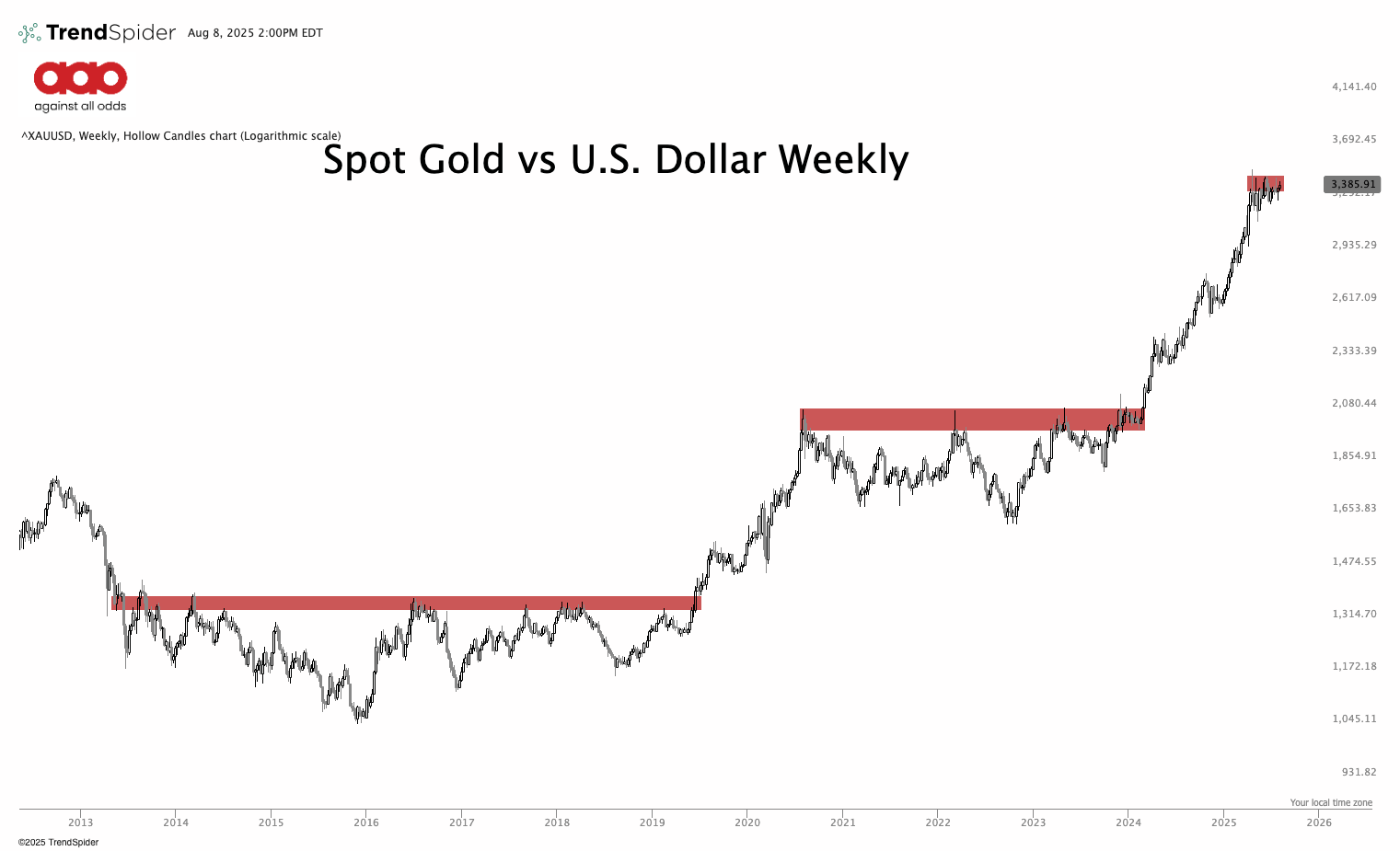 Gold is sitting near fresh all-time highs. There was no blowoff top. Just consolidating strength.