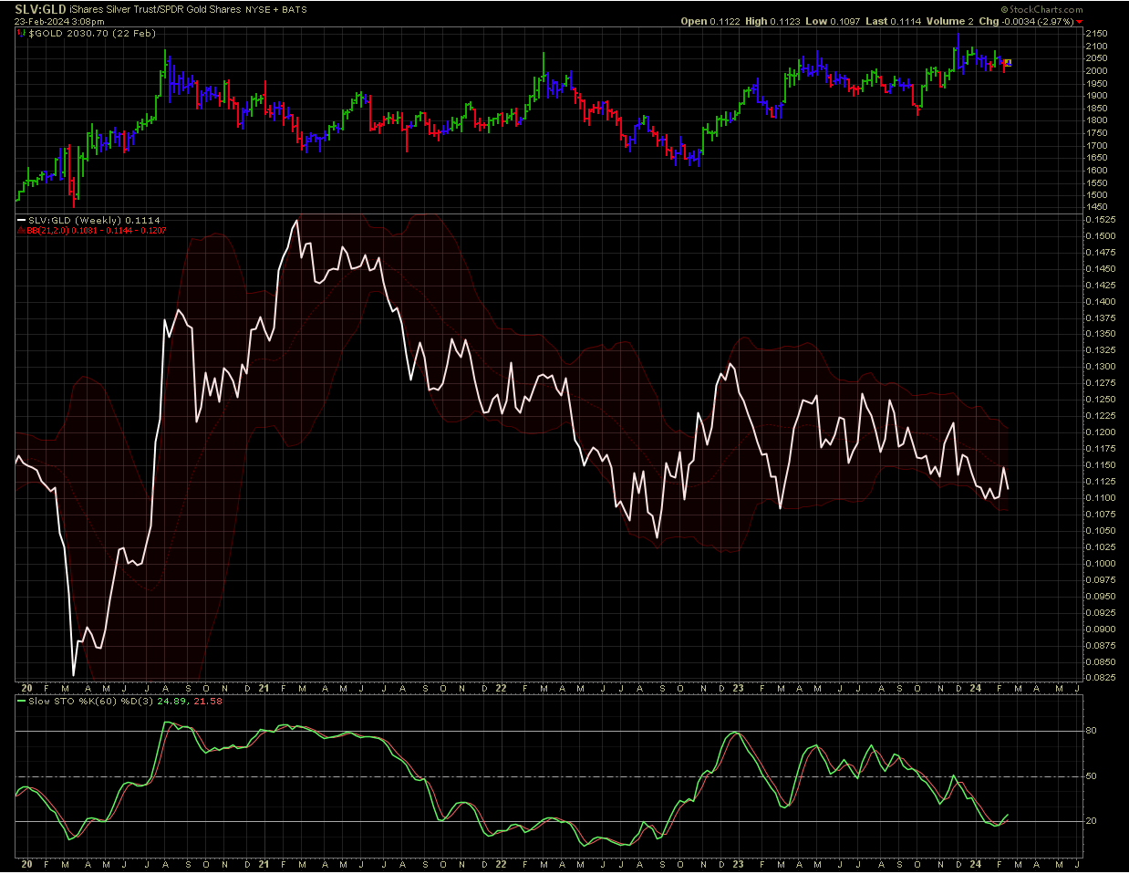 The silver to gold ratio is looking weak as well. This tells us that the precious metals market is in more of a risk off posture.