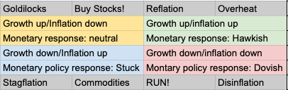 These two developments would lead us in to our next market regime. The one I keep mentioning. Reflation. This is when commodities lead the way.