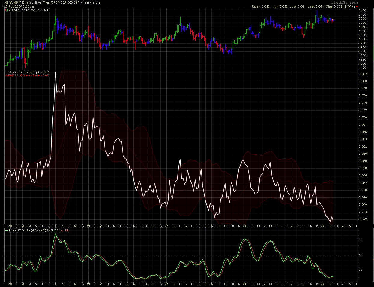 Silver compared to SPY looks even worse. Showing absolutely no relative strength.