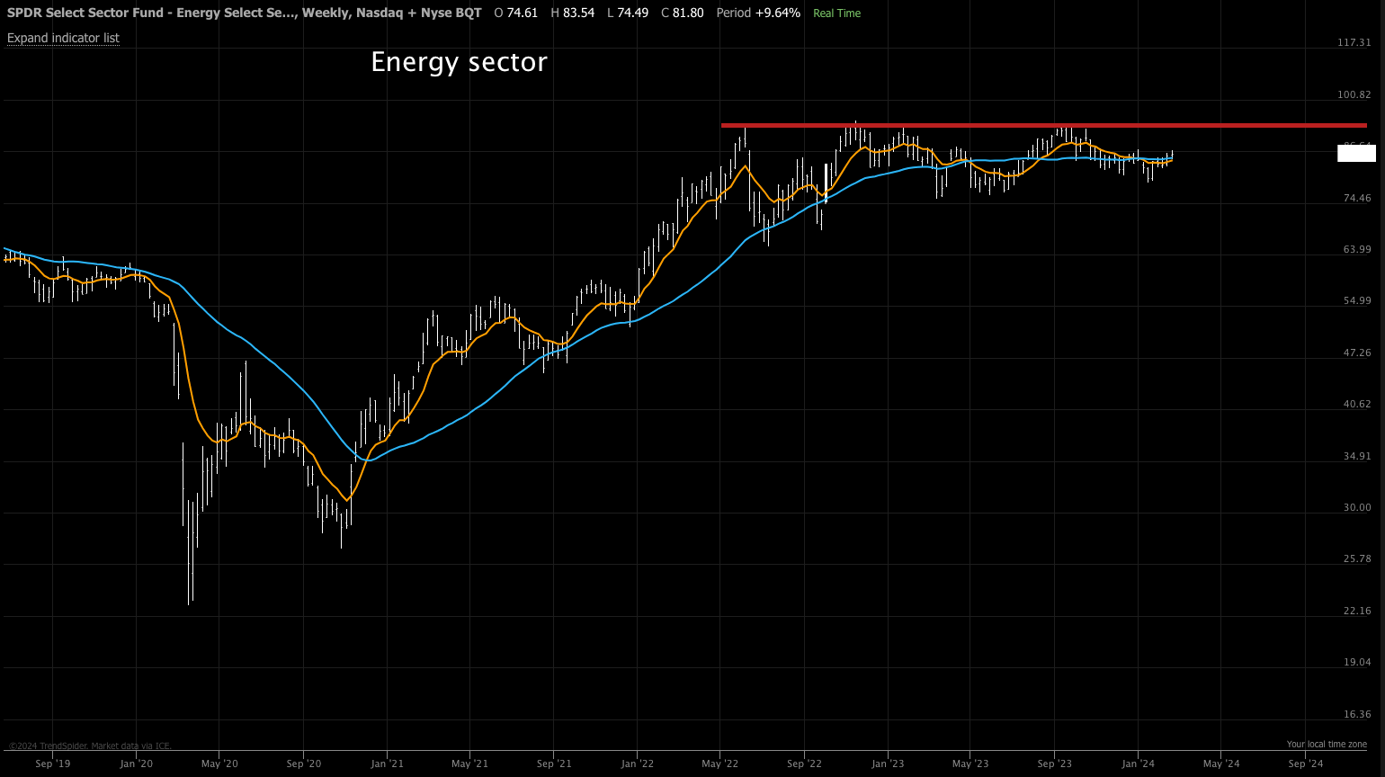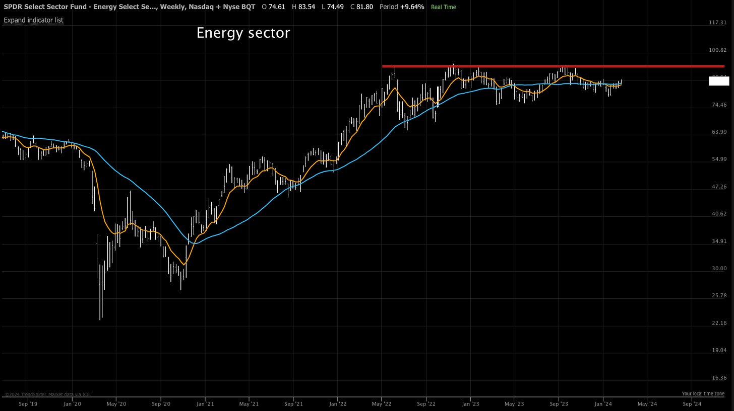 Energy is starting to move as well. We are still waiting to see it close over 93.50. We are long energy already and we have been long that sector in our long term portfolio for awhile. If you want to swing trade it, I would wait for it to cross major resistance.