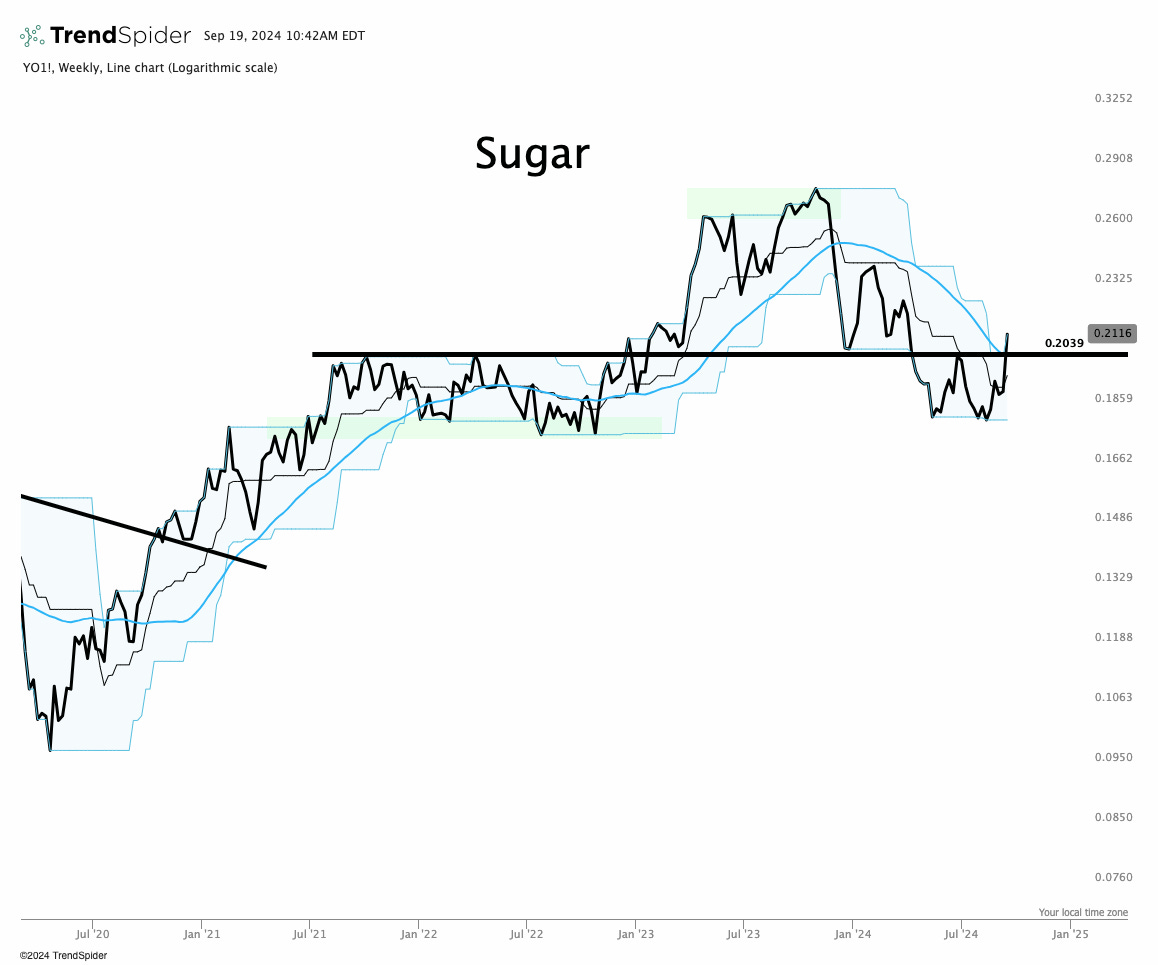 Sugar is making a move above it’s 200 day MA and closed at a 100 day high.