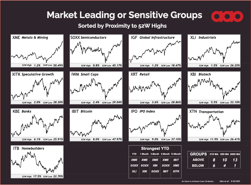 Look at the dashboard of market-leading groups. Semiconductors (SOXX) are still powering higher. That tells you risk appetite is alive and well. If chips are strong, the bull market isn’t dead. Period.