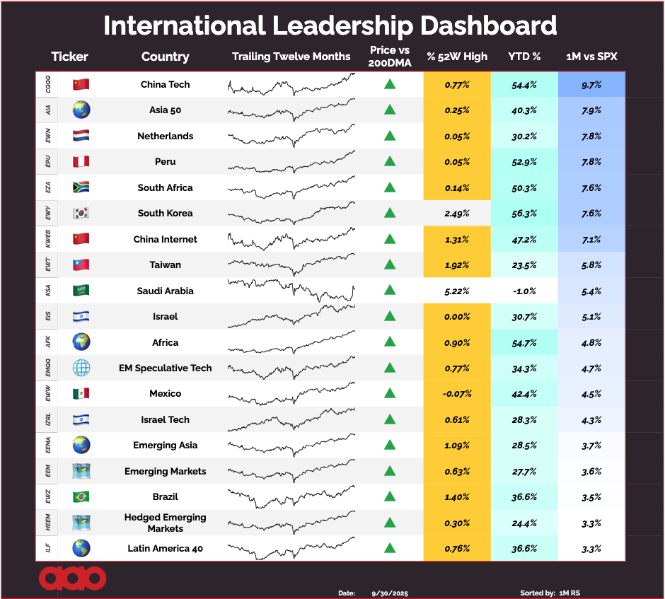 China tech, Asia 50, South Korea, Peru, South Africa, even frontier stuff like Africa ETFs are outperforming. EM speculative tech is alive.