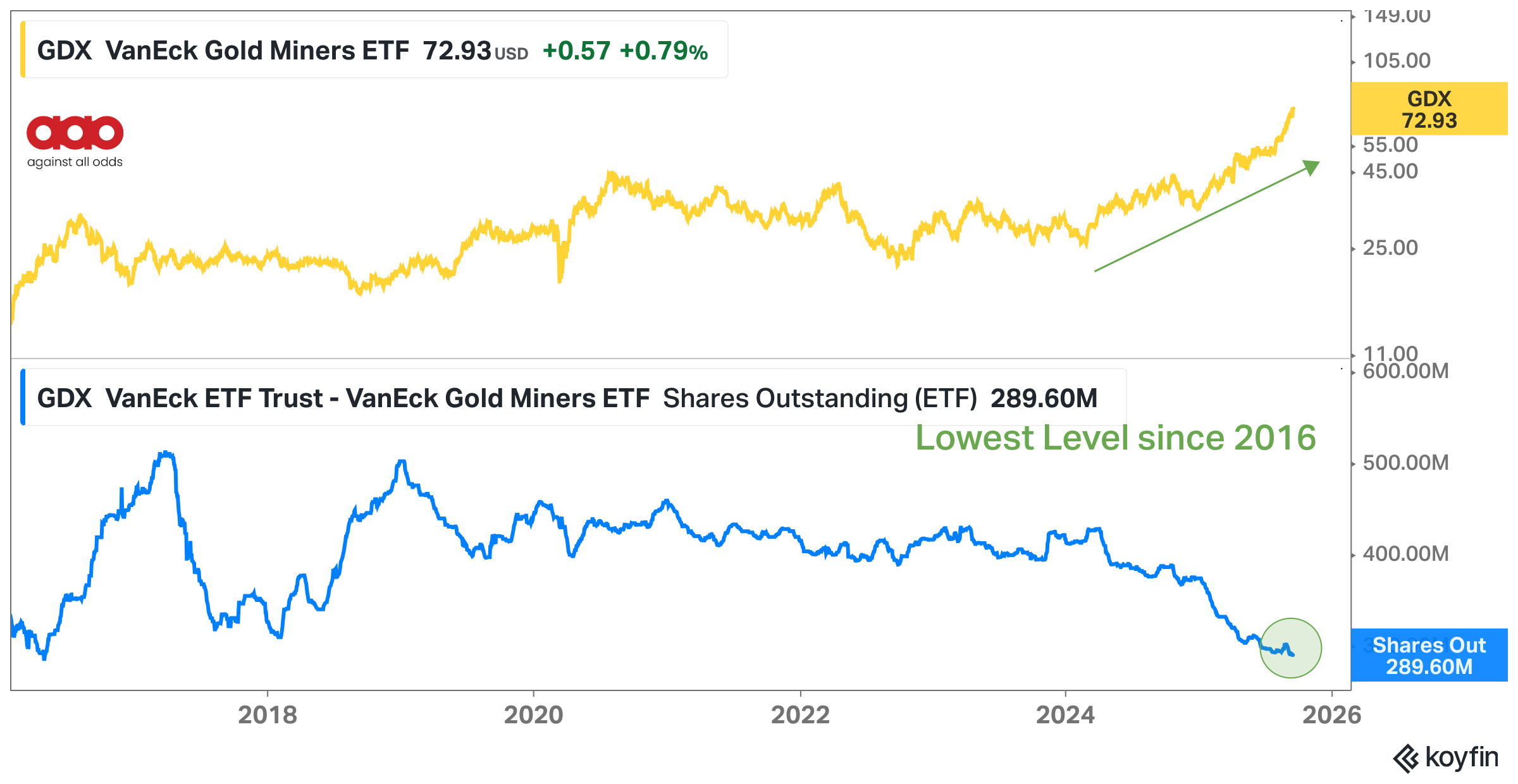 When GDX is making new highs while supply of shares is at multi-year lows.