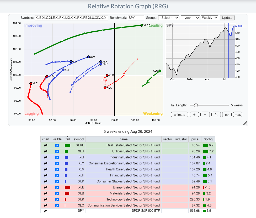 RRG charts are showing that money is flowing in to these sectors. Look what sectors are leading. Sectors that lead when bond yields are dropping.