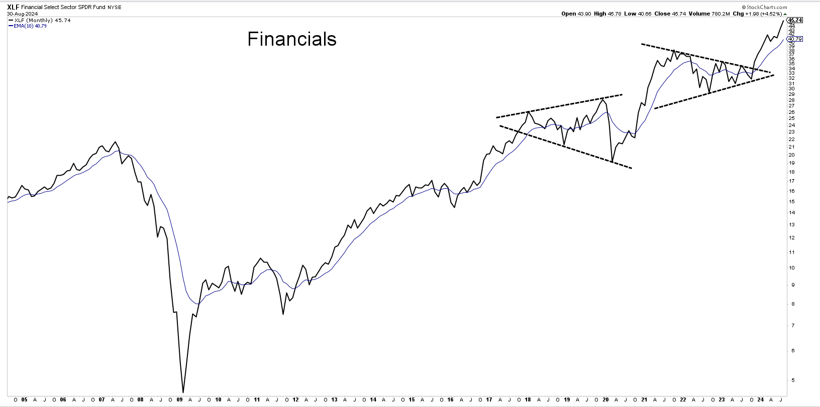 The equal weight is giving us a similar set up. However, the equal weight financials are right behind real estate.