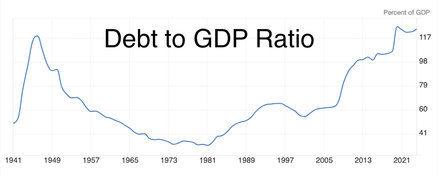 Now check out this Debt to GDP chart. Yields climbed for 40 years because of it.