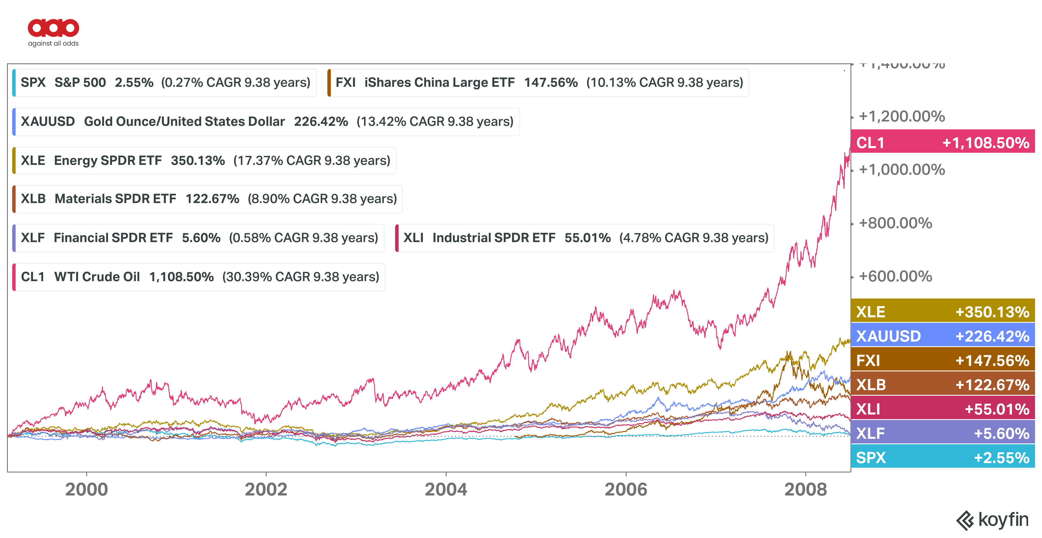 SPX compounded at 0.27% during that time. Oil? 30% per year. A 1,000% return over the same stretch.