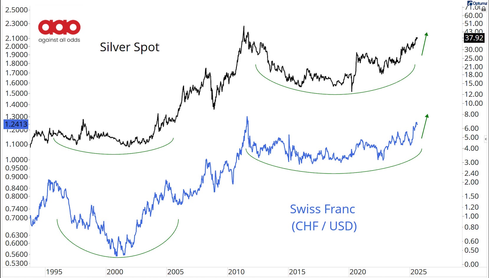 Correlation: The Swiss franc’s strength, tied historically to silver, is a major tailwind.