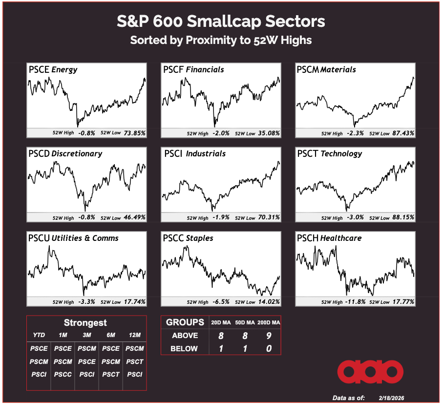 Nine out of nine groups sitting above their 200-day moving averages. That’s not defensive positioning. That’s participation. That’s breadth. That’s capital flowing toward cyclicals.