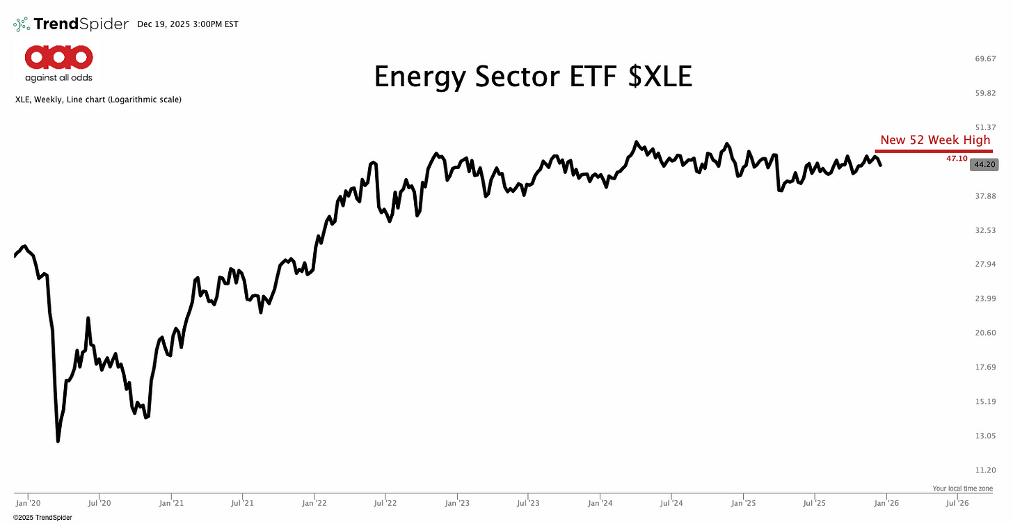 The XLE chart is not broken. In fact, it’s nearly making new 52-week highs. That matters. But context matters more.