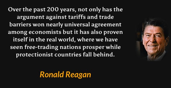 Ronald Reagan: Reagan believed in free markets and reducing barriers to global trade. He called for lower or no tariffs and led efforts to promote international economic cooperation, famously stating, “Protectionism is destructionism.”
