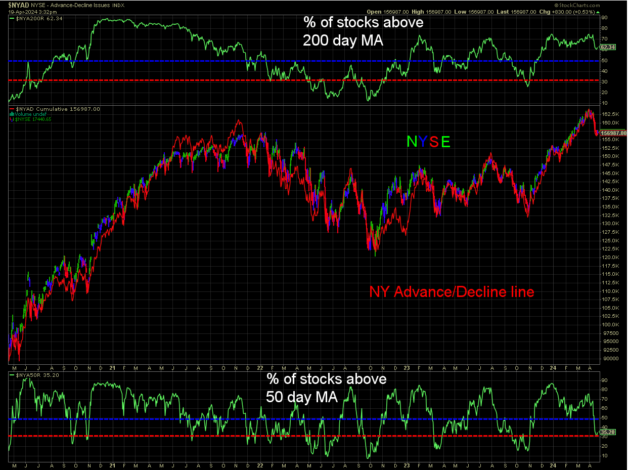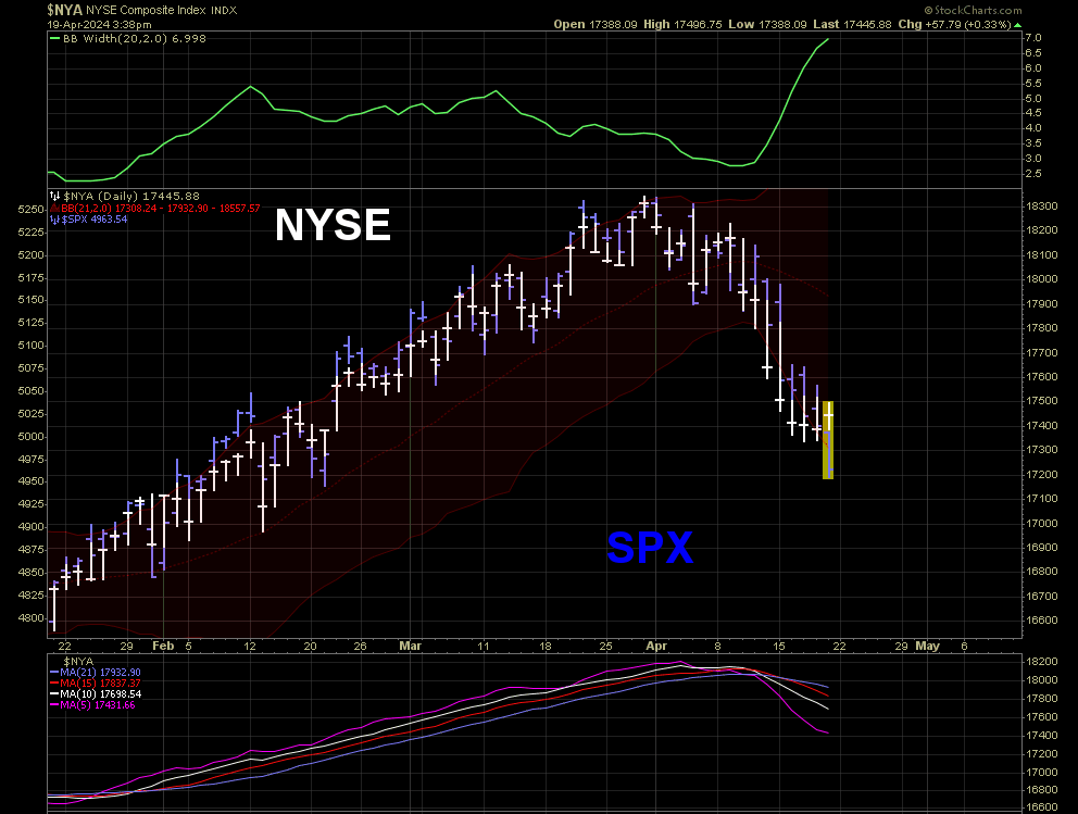 NYSE/SPX-Our broad market index the New York Stock Exchange is bottoming out while the technology heavy $SPX is going lower. This is also leading us to believe that the market will bottom out at some point and reflationary sectors will lead the way higher.