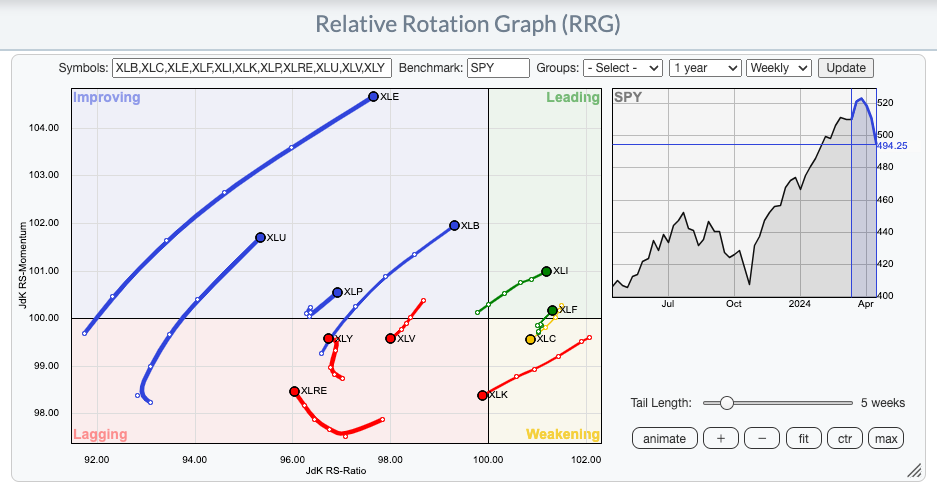 Relative Strength and momentum are also telling us where to go. XLE, XLU, XLP, XLB, XLI XLF are all giving us momentum signals to the upside. This is between both regimes. Most of these can go up in both stagflationary (as long as inflationary pressure is not too high) and reflationary. I would continue to watch XLE and XLU. If XLE continues to outperform the market will most likely trade in a risk on environment. If XLU starts to outperform we will head in to a risk off environment.