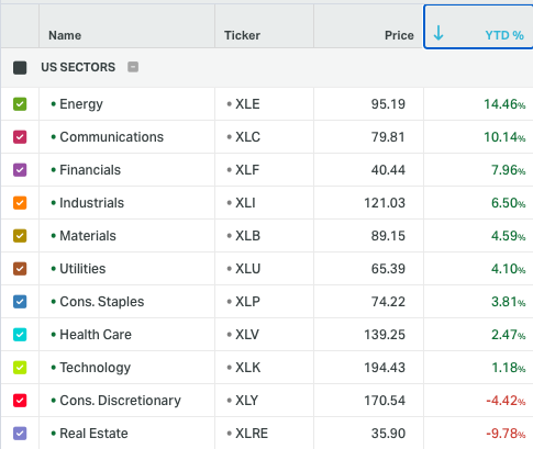 Year to date-Energy, Financials, Industrials… Look I know that people will say that we might be headed in to a bear market and that the rally is over. I don’t think it is over. I do think that we continue rotating in to different areas. Different sectors, countries, commodities and more. There is a reason why our portfolios are holding up well and why our futures portfolio is hitting new highs this morning.