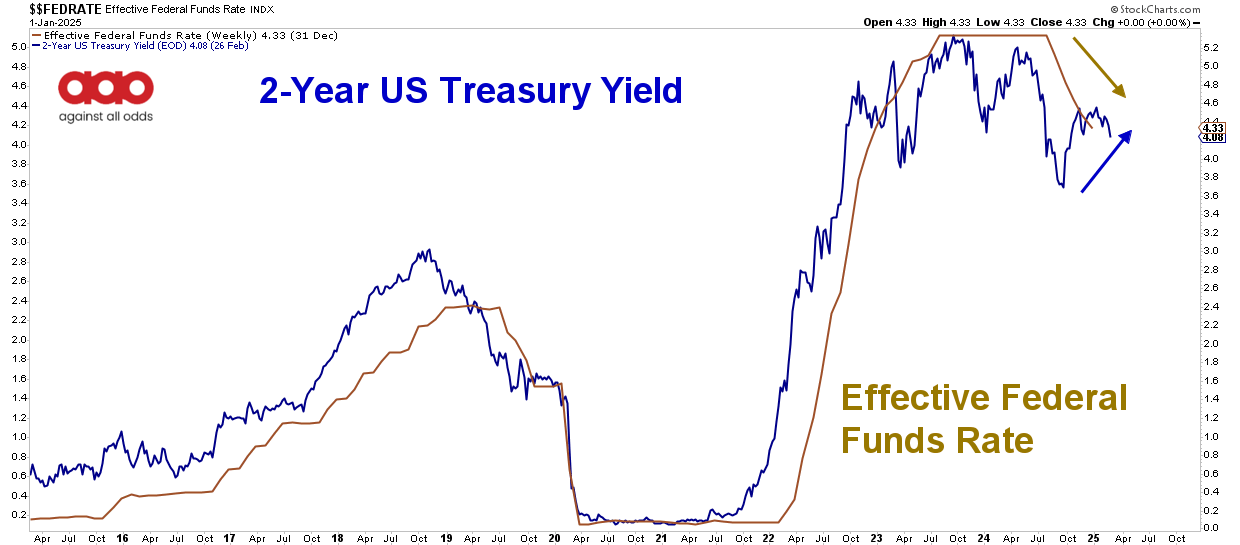 Look at the 2-year yield. It started surging the moment the Fed began cutting rates. That shift made us rethink bonds—we expected yields to climb on the short end of the curve, forcing the Fed to slow its hikes.