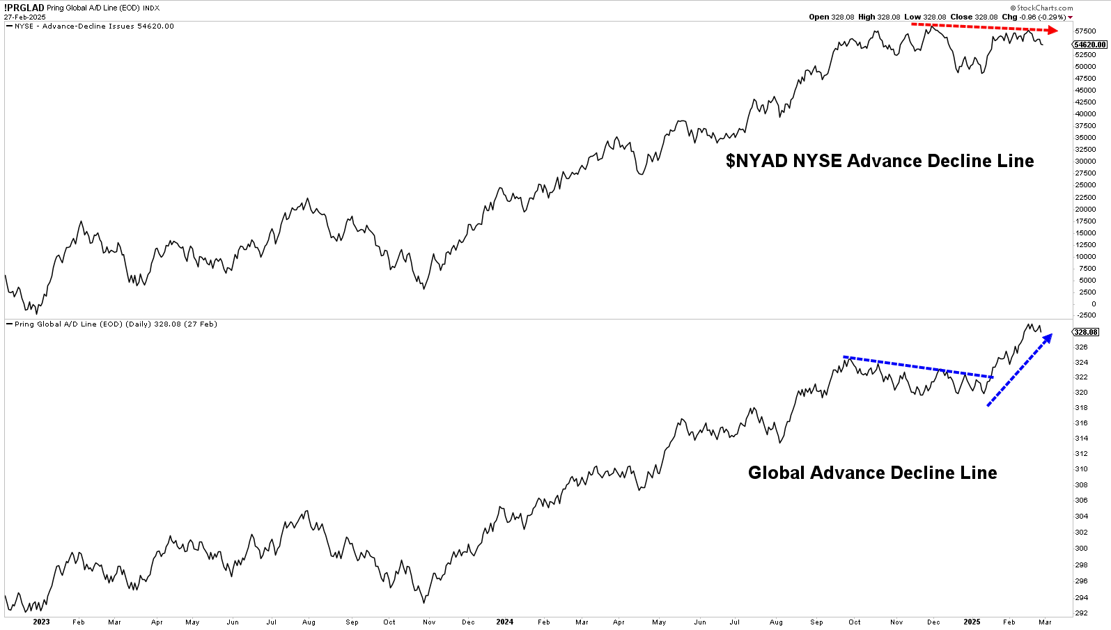 The U.S. is showing weakness across the board. Global markets are trending higher.