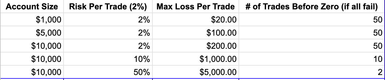 Risking 2% per trade gives you room to be wrong and still stay in the game.