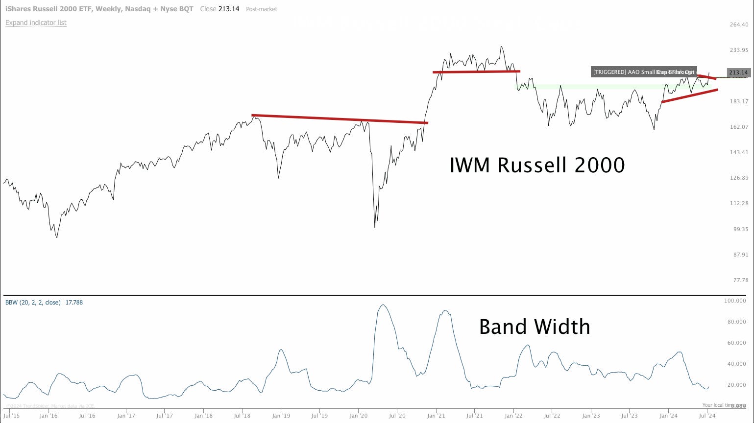 Breakout-Finally a grade A breakout. A grade A breakout is when you have a band squeeze and a breakout at the same time and it clears major resistance all at once.