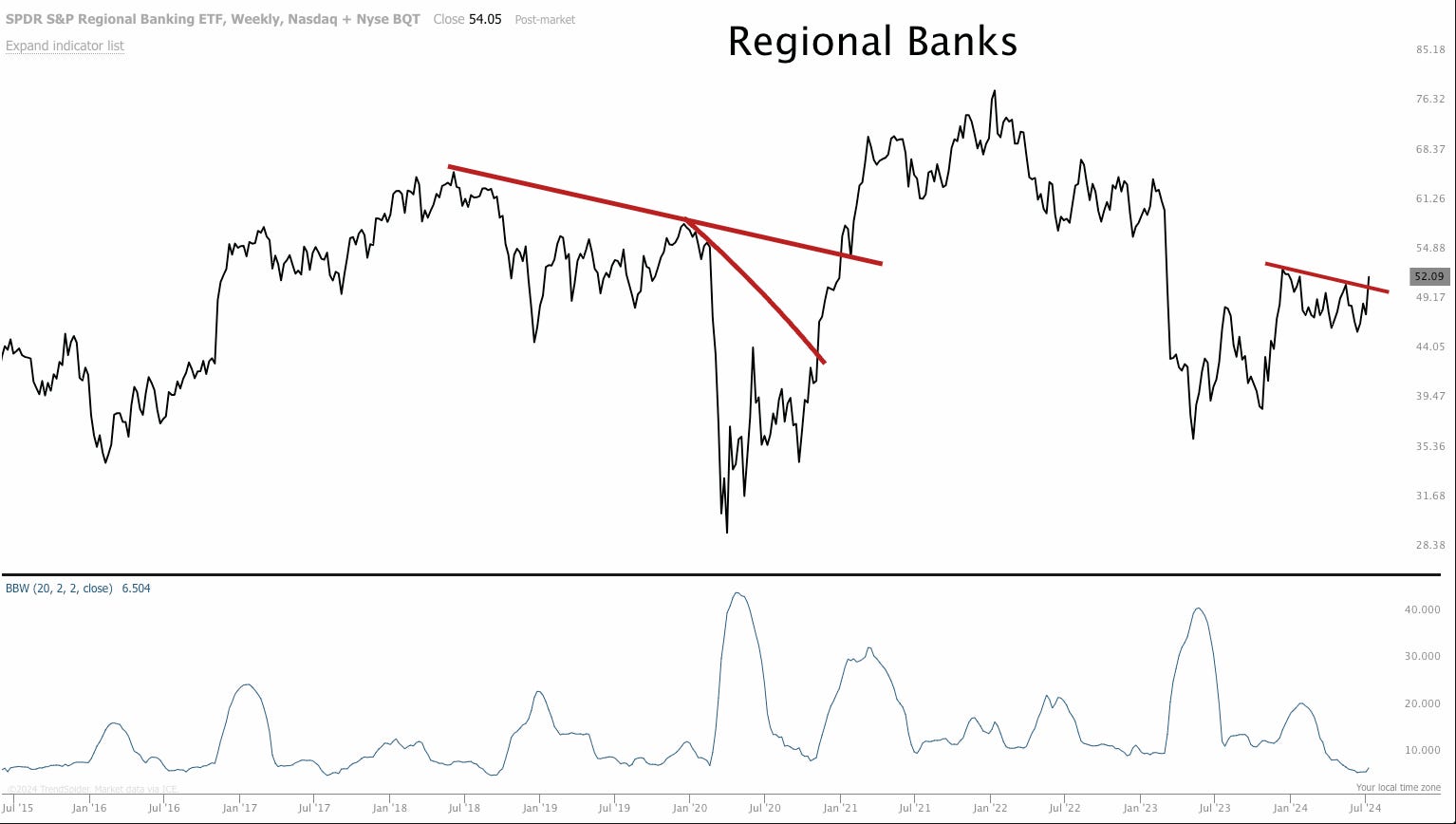 The KRE regional banks has a similar look. Everything is screaming that the Fed Rate is going to drop soon. We added it to our long term portfolio yesterday. Still actionable.