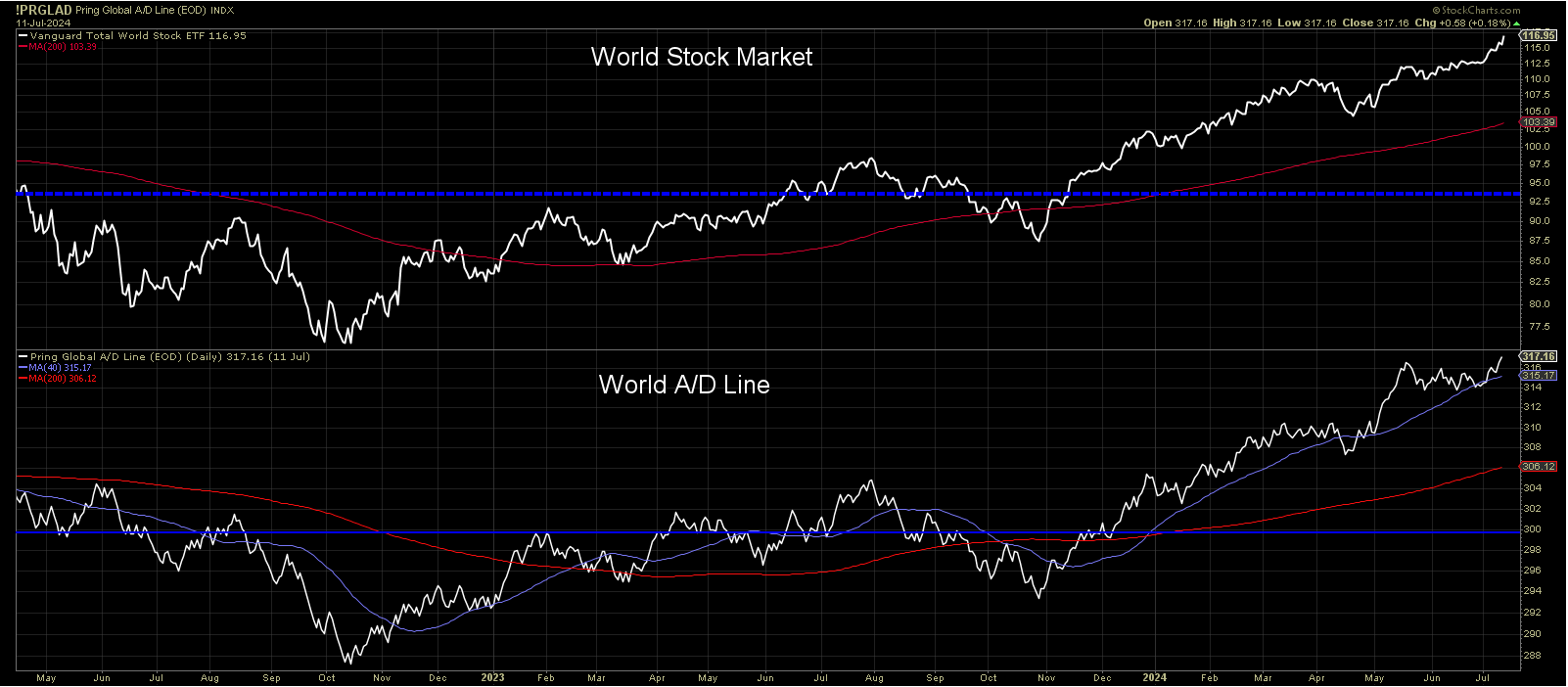 Our bull/bear indicator never gave us a sell signal. However breadth was thin and the ride was choppy. Now we have the ingredients for a stable rally in the summer? At the very least we should see followthrough for the next month or so.