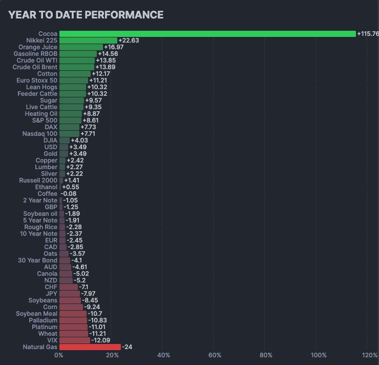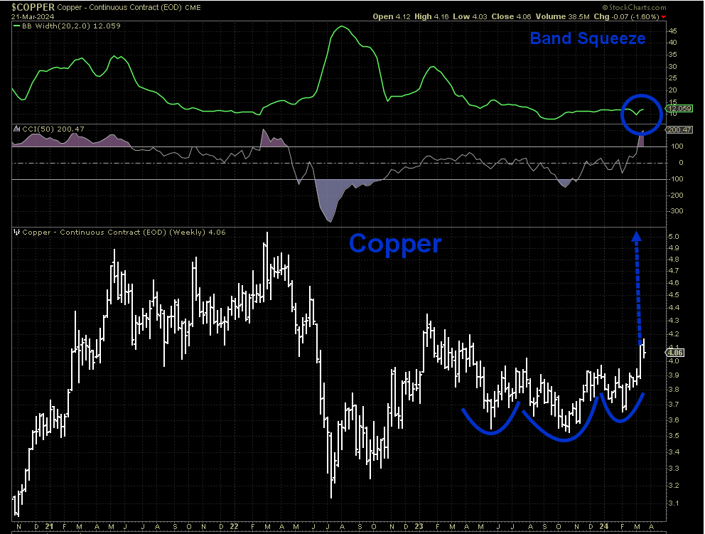 Copper is the second most important thing to watch. It gave back 3% this week after a major move last week. This is normal but be careful if we see more follow through to the downside.