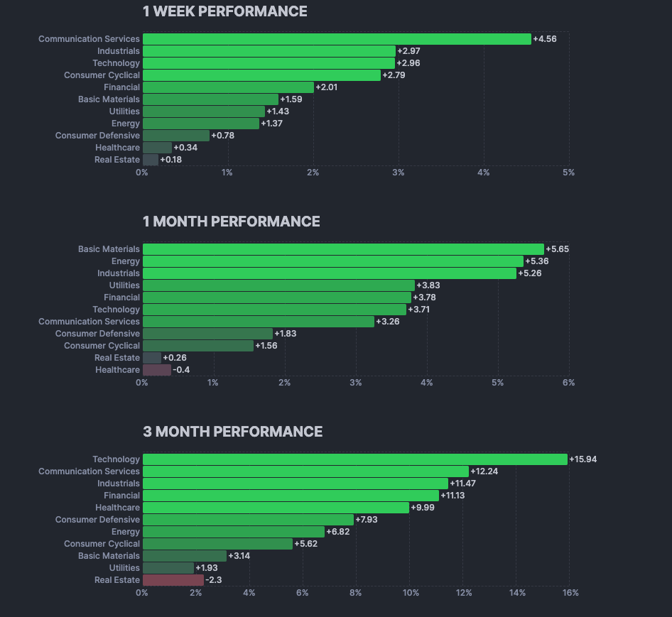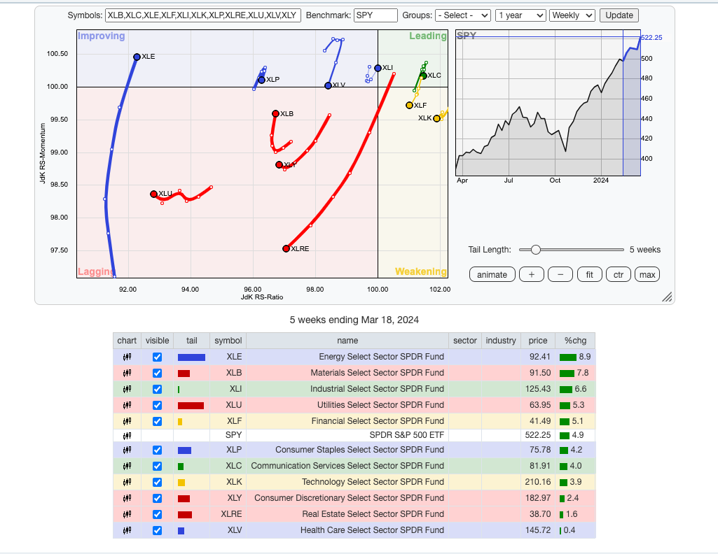 I know everyone is getting annoyed with me talking about the energy trade but it is where the value is. At the moment. Overall the sectors that are beating the SPY in a 5 week period is energy, materials, industrials, utilities (I would not touch them with bonds struggling) and financials. This is the reflation trade showing you where to be. Next week I am going to make a spreadsheet on what to buy during each market regime.